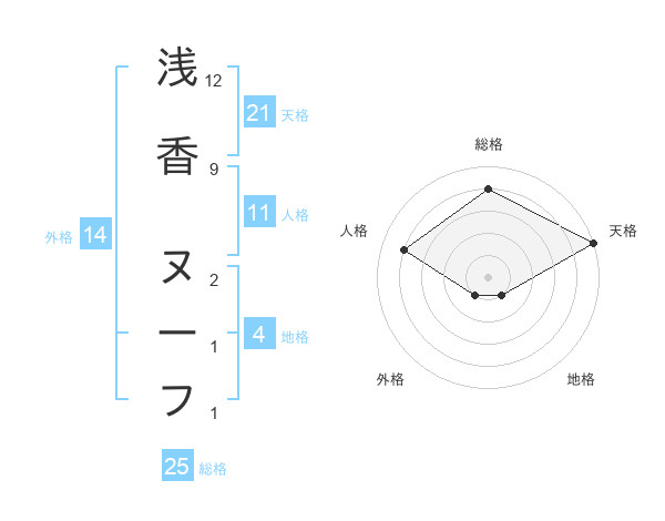 浅香 ヌーフさんの天格は21画の5点!