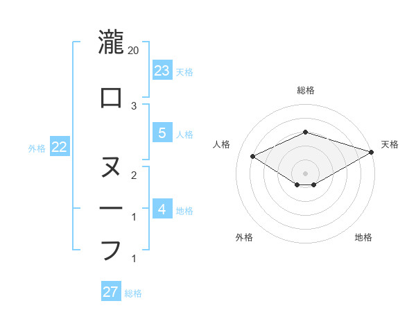 瀧口 ヌーフさんの天格は23画の5点!