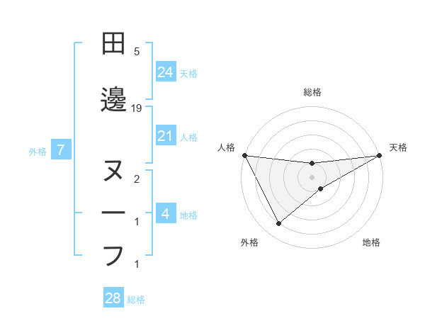 田邊 ヌーフさんを姓名の画数から五運を鑑定
