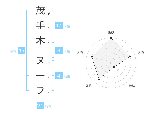 茂手木 ヌーフさんの総格は21画の5点!