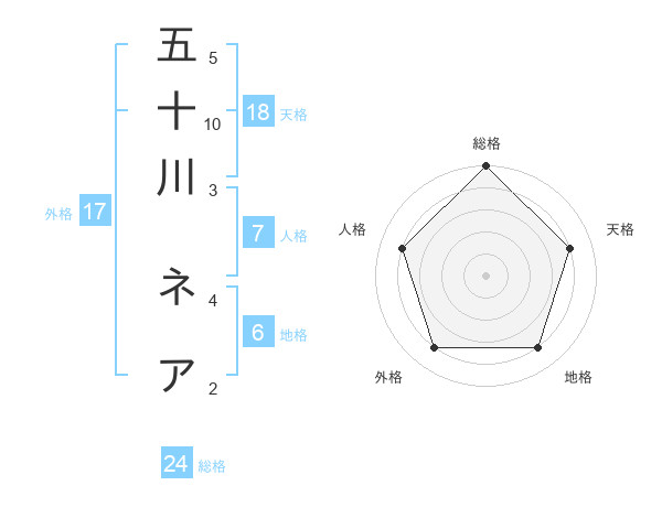 五十川 ネアさんを姓名の画数から五運を鑑定
