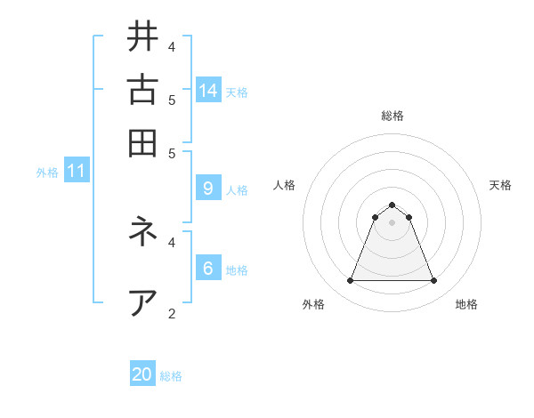 井古田 ネアさんを姓名の画数から五運を鑑定
