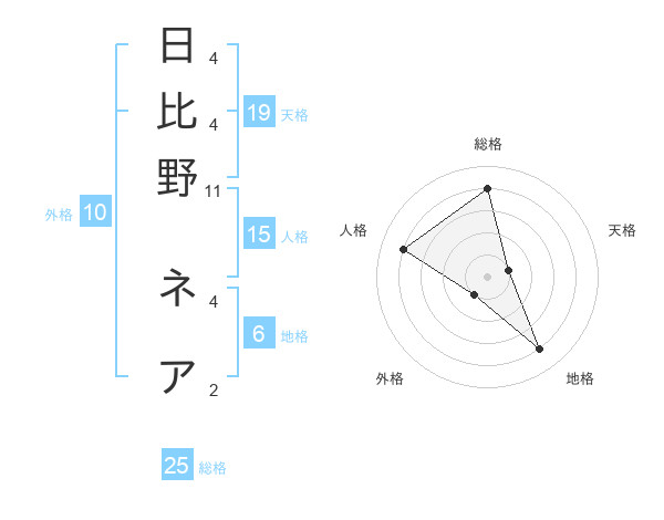 日比野 ネアさんを姓名の画数から五運を鑑定