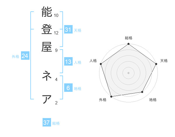 能登屋 ネアさんを姓名の画数から五運を鑑定