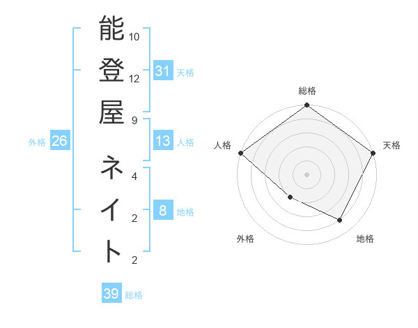 能登屋 ネイトさんの総格は39画の5点!