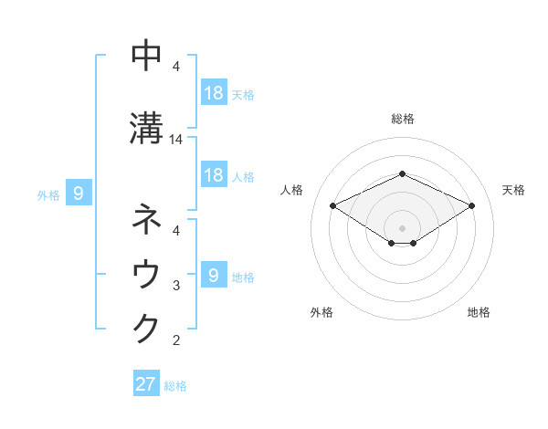 中溝 ネウクさんの天格は18画の4点!