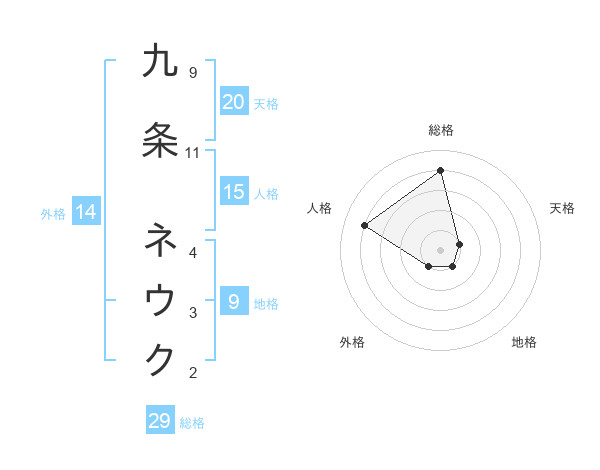 九条 ネウクさんを姓名の画数から五運を鑑定