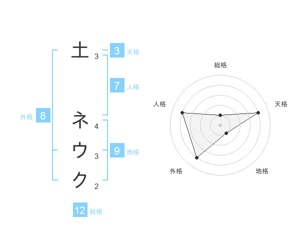 土 ネウクさんの総格は12画の1点!