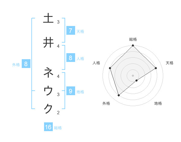 土井 ネウクさんを姓名の画数から五運を鑑定