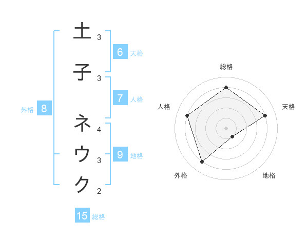 土子 ネウクさんを姓名の画数から五運を鑑定