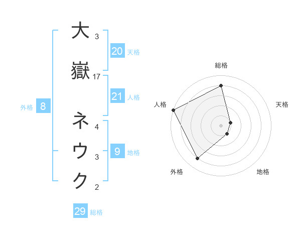 大嶽 ネウクさんの総格は29画の4点!
