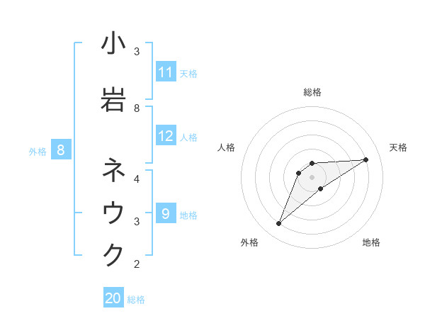 小岩 ネウクさんを姓名の画数から五運を鑑定
