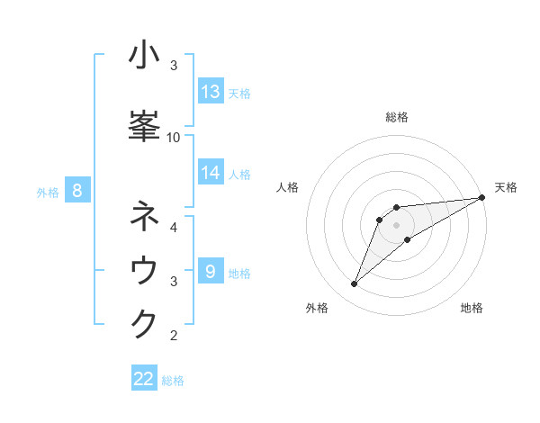 小峯 ネウクさんを姓名の画数から五運を鑑定