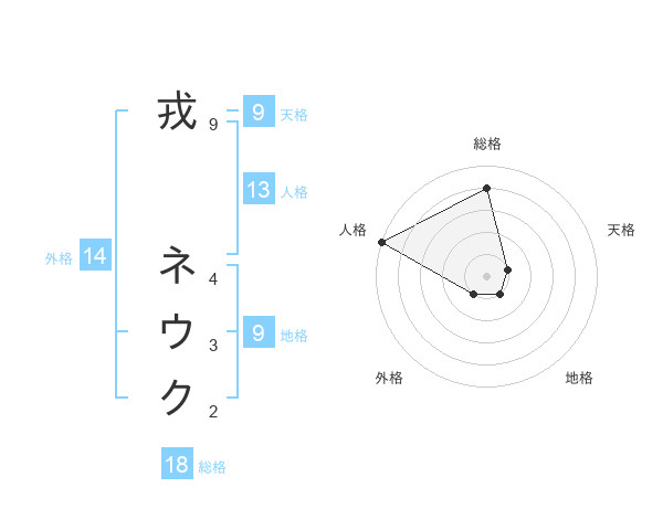 戎 ネウクさんの天格は9画の1点!