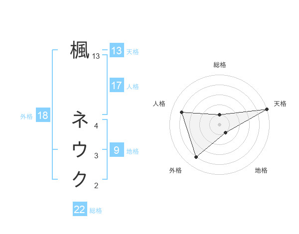 楓 ネウクさんの総格は22画の1点!
