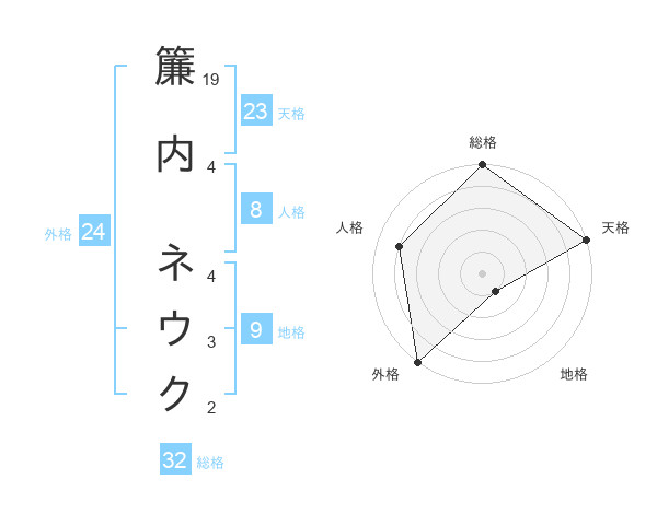 簾内 ネウクさんを姓名の画数から五運を鑑定