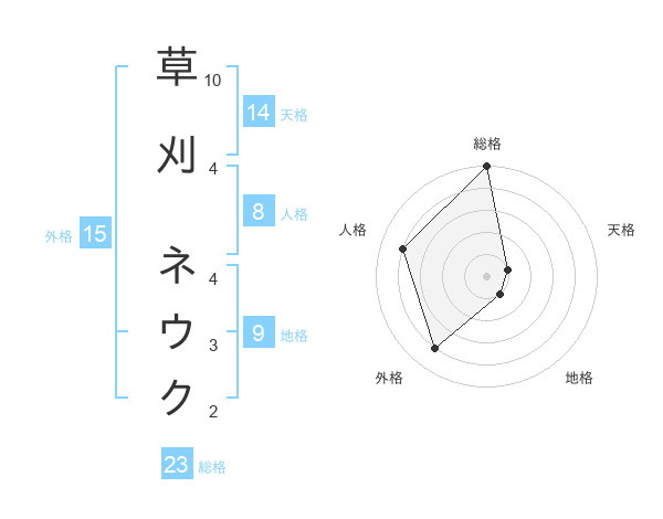 草刈 ネウクさんの総格は23画の5点!