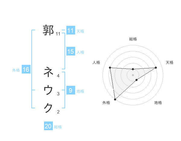 郭 ネウクさんの総格は20画の1点!