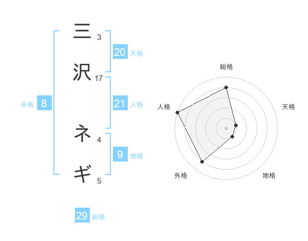 三沢 ネギさんを姓名の画数から五運を鑑定