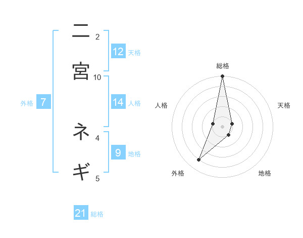 二宮 ネギさんを姓名の画数から五運を鑑定