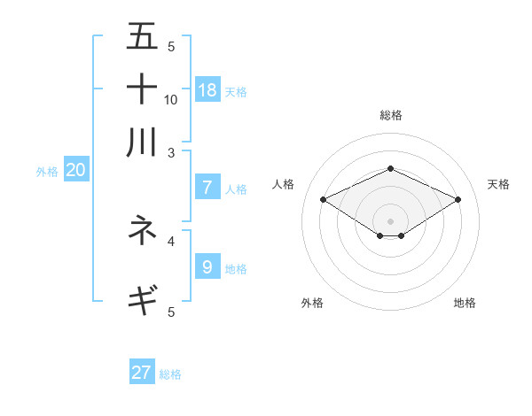 五十川 ネギさんを姓名の画数から五運を鑑定
