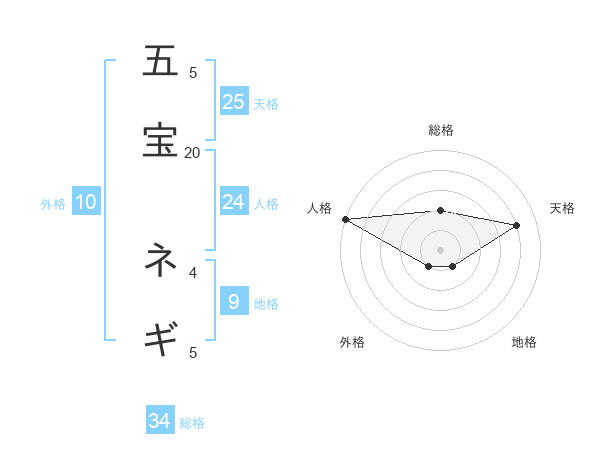 五宝 ネギさんを姓名の画数から五運を鑑定