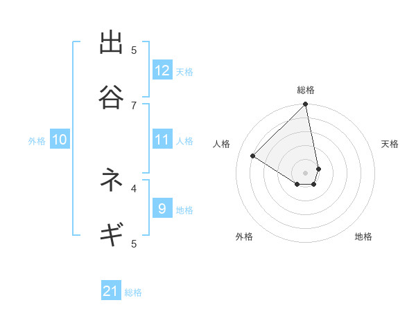 出谷 ネギさんの総格は21画の5点!