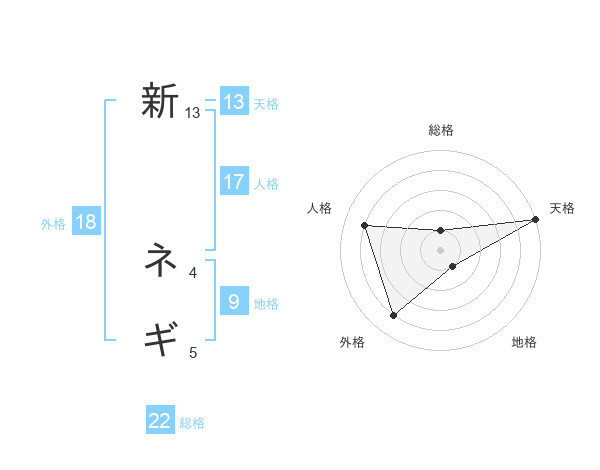 新 ネギさんの総格は22画の1点!