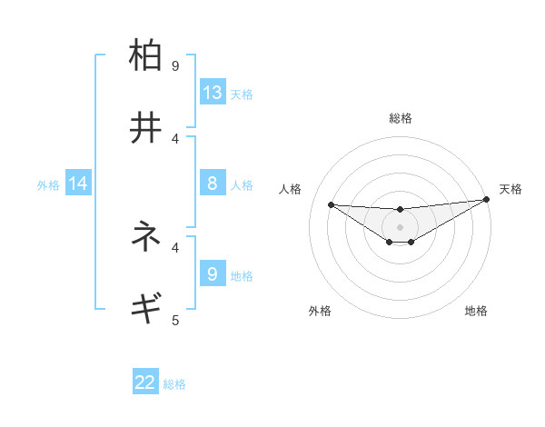 柏井 ネギさんの天格は13画の5点!