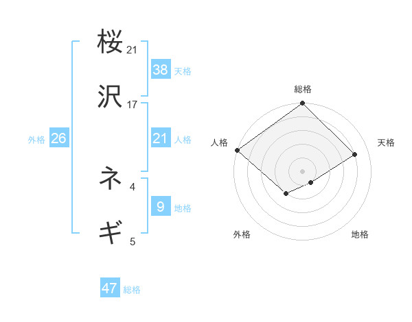 桜沢 ネギさんの総格は47画の5点!