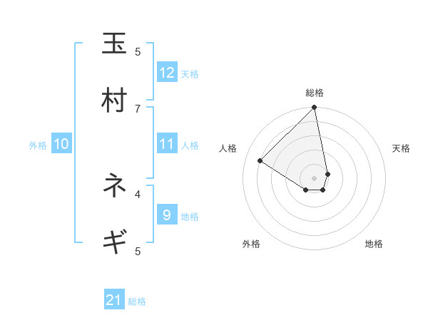 玉村 ネギさんの総格は21画の5点!