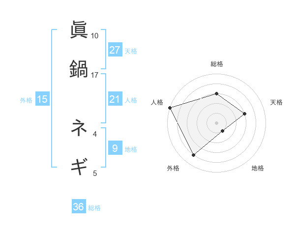 眞鍋 ネギさんの天格は27画の3点!