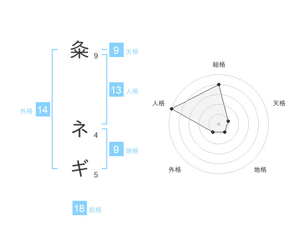 粂 ネギさんの天格は9画の1点!