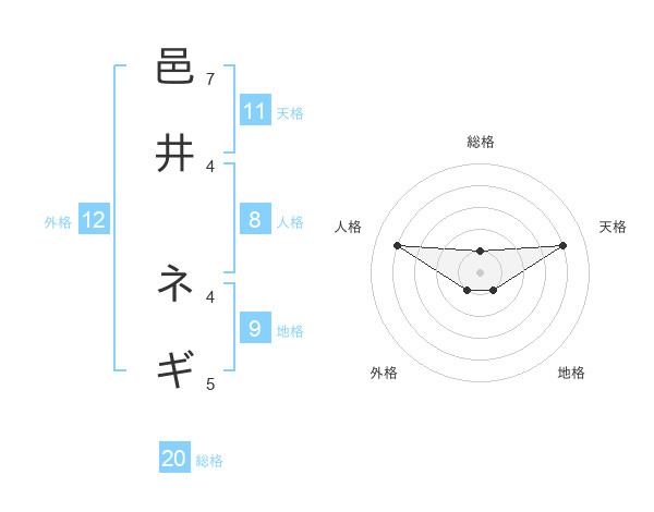 邑井 ネギさんを姓名の画数から五運を鑑定
