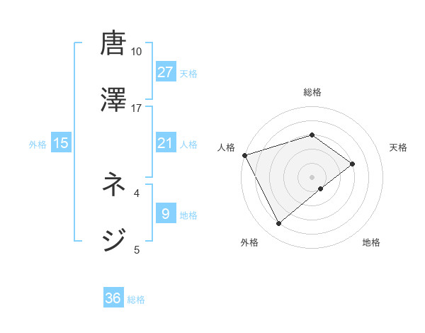 唐澤 ネジさんを姓名の画数から五運を鑑定