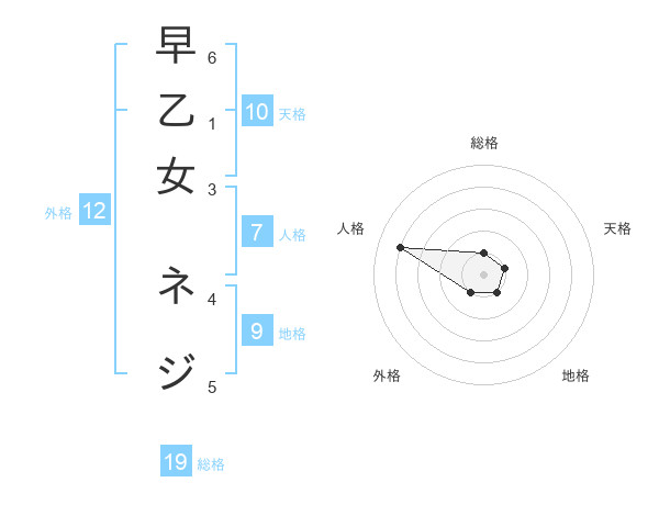 早乙女 ネジさんを姓名の画数から五運を鑑定