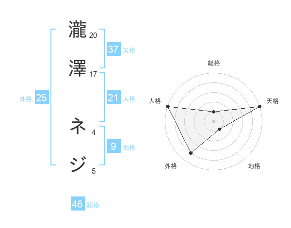 瀧澤 ネジさんを姓名の画数から五運を鑑定