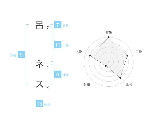 呂 ネスさんの総格は13画の5点!