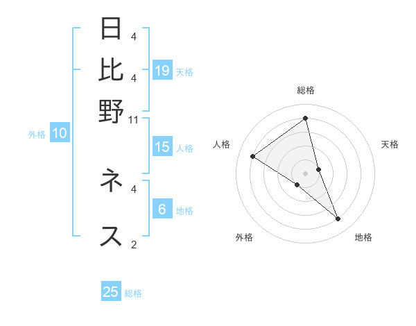 日比野 ネスさんを姓名の画数から五運を鑑定