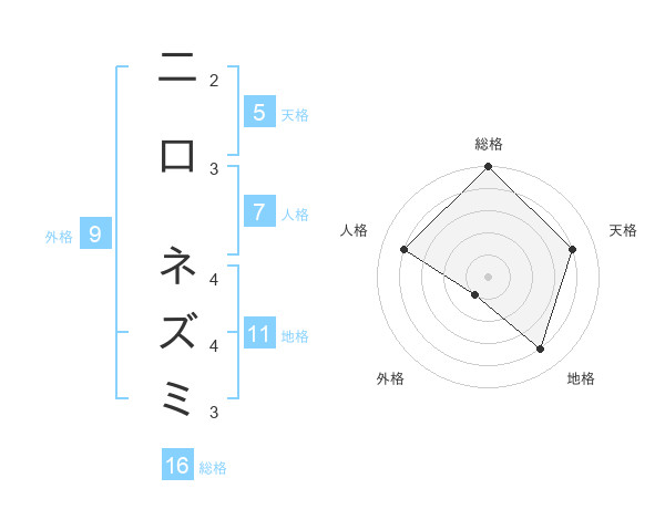 二口 ネズミさんを姓名の画数から五運を鑑定