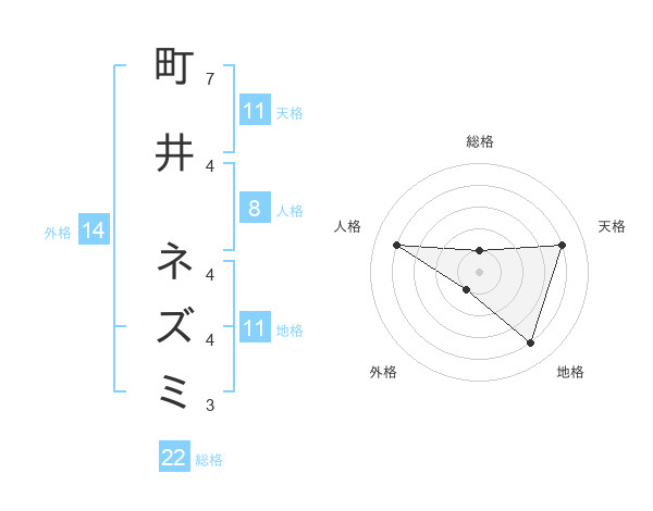 町井 ネズミさんの総格は22画の1点!