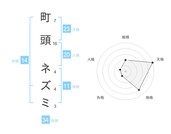 町頭 ネズミさんを姓名の画数から五運を鑑定