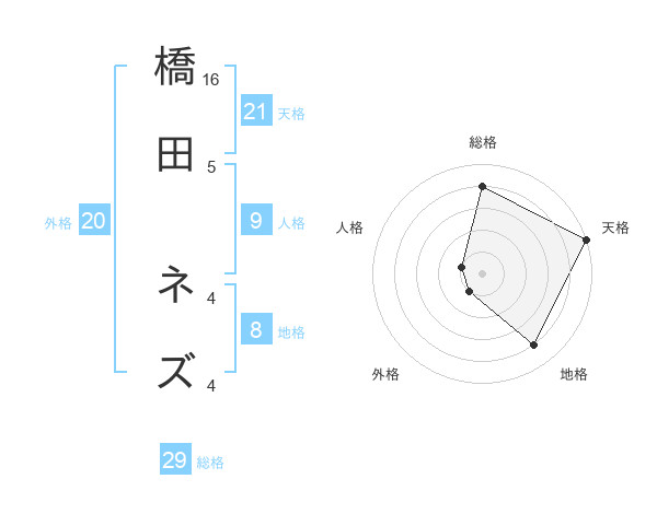 橋田 ネズさんを姓名の画数から五運を鑑定