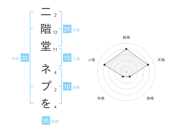 二階堂 ネプをさんを姓名の画数から五運を鑑定