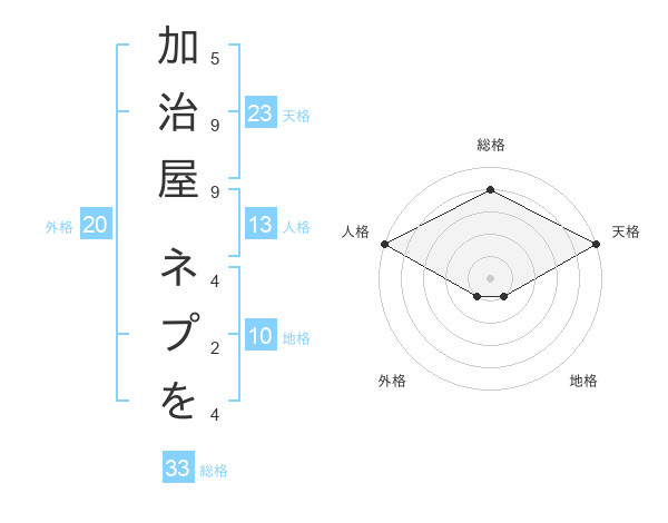加治屋 ネプをさんを姓名の画数から五運を鑑定