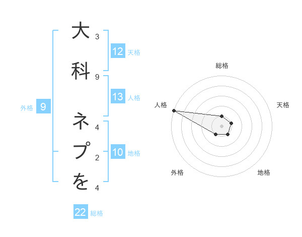 大科 ネプをさんを姓名の画数から五運を鑑定