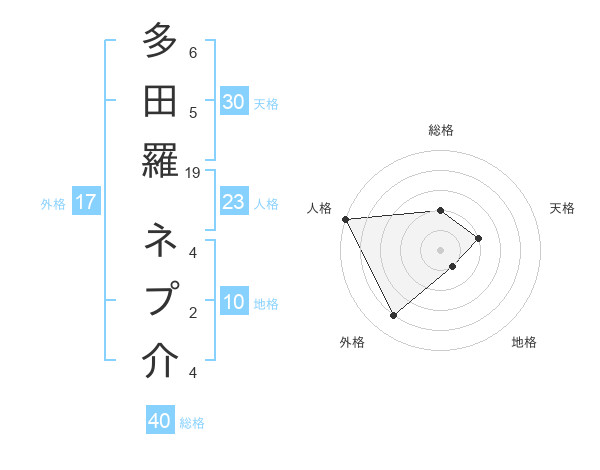 多田羅 ネプ介さんを姓名の画数から五運を鑑定