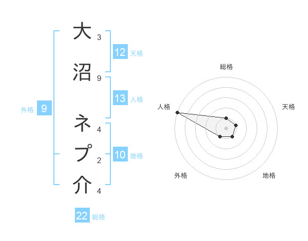 大沼 ネプ介さんを姓名の画数から五運を鑑定