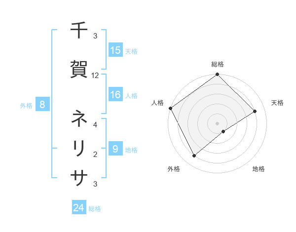 千賀 ネリサさんを姓名の画数から五運を鑑定