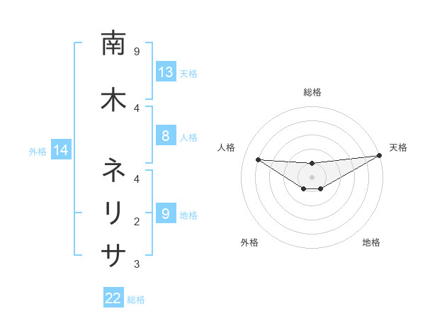 南木 ネリサさんの総格は22画の1点!